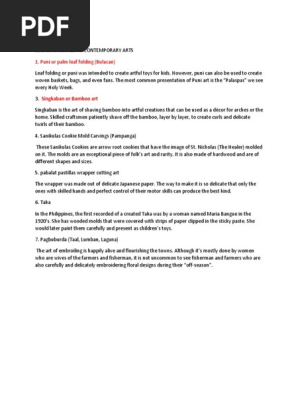 When it comes to selling your art the more information that you provide in your artwork description the better. PUNI a tagalong term from the province of Bulacan which means to beautify or decorate with the use of coconut leaf. Local Materials used in Creating Art Guess the material LOCAL MATERIALS Material Material ABACA Material Material BAMBOO Double click to edit Material Material BURI Material Material COCONUT SHELL Material Material SANTOL TREE Material Material RATTAN UWAY Topic 2 Local What is. Venice Art Biennale 2019 Salone del Mobile 2019 2019 Chicago Architecture Biennial 2017 Chicago Architecture Biennial 2019 Bi-City Shenzhen Biennale Images Folders City Guides Interviews Architectural Photography. Pabalot or Pastillas Wrapper Cutting Art 4. Puni art of Bulacan The Art of Leaf Fronds Folding Puni art is the cretive way of decorating using coconut fronds. The art of shaving bamboo into artful creations that can be used as decor for arches or the home. PUNI Bulakenyos way of decorating using leaf fronds folding The Art of Leaf Fronds Folding in Bulacan Province Philippines 4.